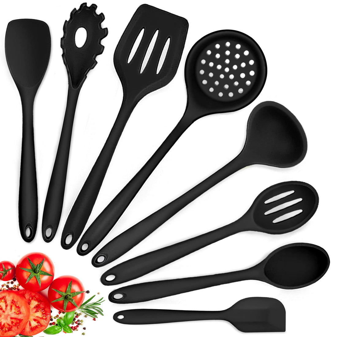 Unsere Küchenutensilien bestehen aus hochwertigem Silikon, teilweise kombiniert mit Holzgriffen. Alle Materialien sind lebensmittelecht und für den Küchengebrauch geeignet.